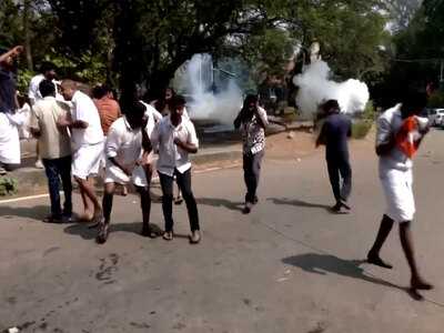 Police use tear gas to disperse Youth Congress protestors over Sabarimala gold theft in Kerala