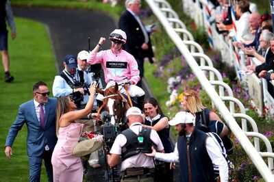 Frankie Dettori performs one of his final flying dismounts on farewell tour